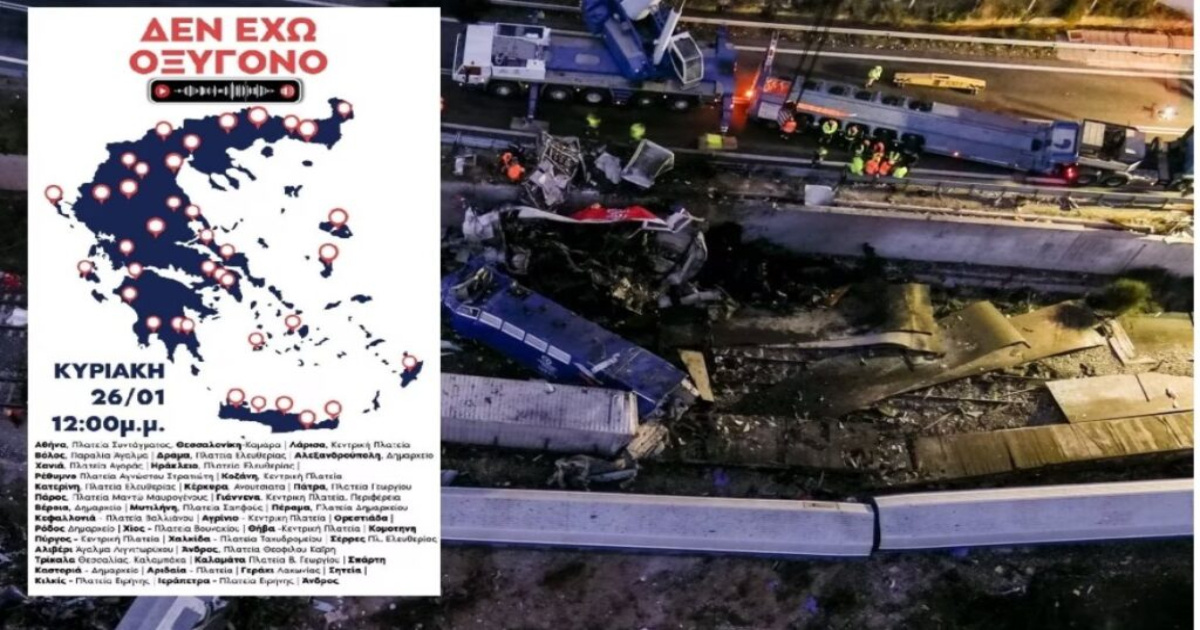 Η απήχηση στο κάλεσμα των συγγενών των θυμάτων είναι τεράστια. Χιλιάδες κόσμου με κεντρικό σύνθημα «Δεν έχω οξυγόνο» – φράση που ακούστηκε στο ανατριχιαστικό ηχητικό ντοκουμέντο που αποδεικνύει ότι πολλά από τα παιδιά ζούσαν μετά τη σύγκρουση – δίνουν ραντεβού με αίτημα την απονομή δικαιοσύνης.