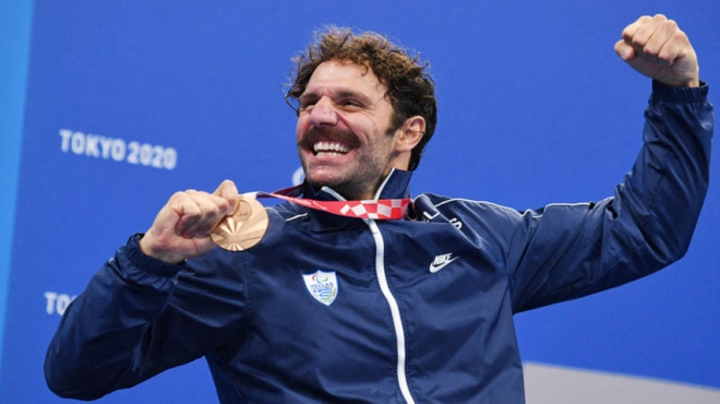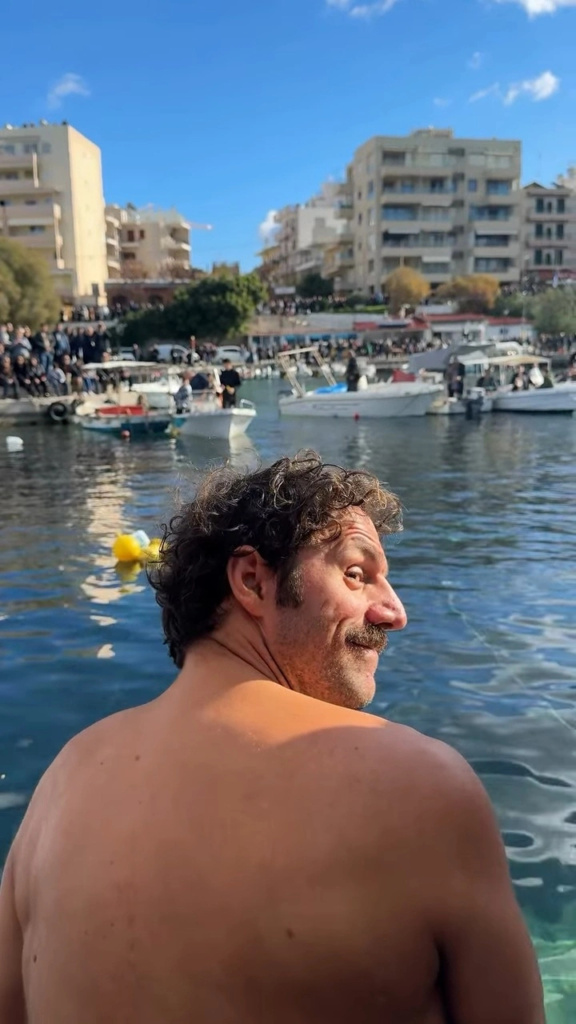 Ο Αντώνης Τσαπατάκης βούτηξε στο λιμανάκι της Νέας Χώρας και πιάνοντας τον Τίμιο Σταυρό στον εορτασμό των Θεοφανίων.