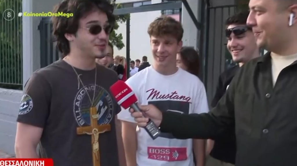 ‘Εξω από το 1ο Λύκειο Πυλαίας στην Θεσσαλονίκη, το MEGA εντόπισε ένα μαθητή, τον Παναγιώτη, ο οποίος ξεχώρισε.