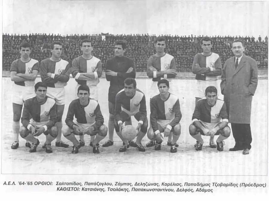 Ο Δημήτρης Ζάμπας διετέλεσε ένας από τους πρώτους ποδοσφαιριστές που φόρεσε τη βυσσινί φανέλα, όντας βασικό στέλεχος της ΑΕΛ κατά την παρθενική παρουσία της στην ιστορία του ελληνικού ποδοσφαίρου, τη σεζόν 1964-65.”