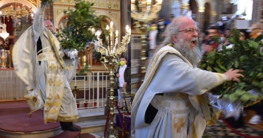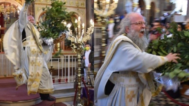 Λίγο μετά τις 8:30 π.μ., το ιερό άνοιξε και ο ιερέας εξήλθε ραντίζοντας με δαφνόφυλλα τους πιστούς, ενώ παράλληλα οι παρευρισκόμενοι χτυπούσαν με δύναμη τα στασίδια, όπως ορίζει το έθιμο, δημιουργώντας μια εκκωφαντική αλλά πανηγυρική ατμόσφαιρα.