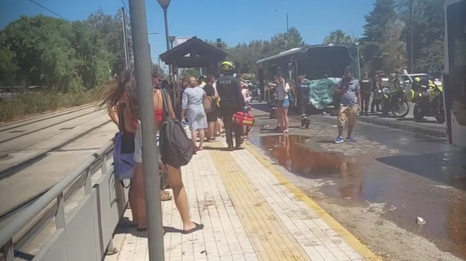 Σύμφωνα με πληροφορίες, η οδηγός του λεωφορείου-φυσαρμόνικα αισθάνθηκε αδιαθεσία και δεν κατάφερε να φρενάρει έγκαιρα με αποτέλεσμα να πέσει στο προπορευόμενο όχημα στην Βούλα.