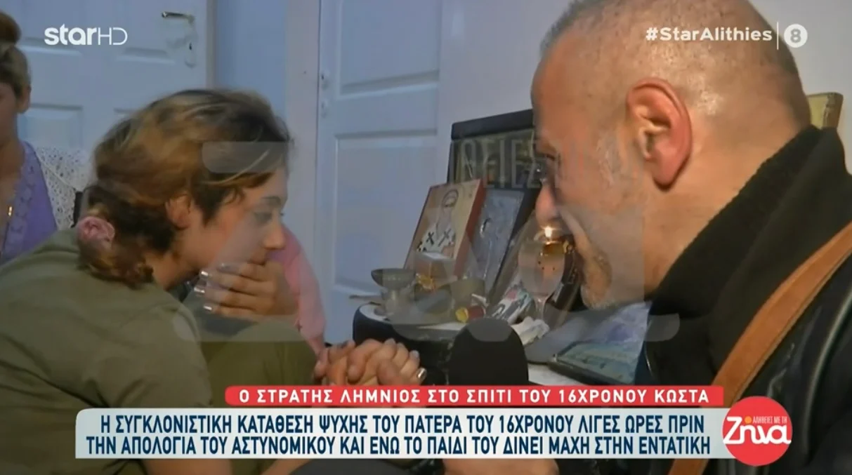 «Χάλια ζούμε, θέλουμε τον Κώστα πίσω να ‘ρθει. Θέλουμε δικαιοσύνη» δηλώνει η πεθερά του 16χρονου. Η σύζυγος και η μητέρα του 16χρονου θέλουν όπως λένε, o αστυνομικός που τον πυροβόλησε να οδηγηθεί στις φυλακές. «Να γίνει καλά ο γιος μου, ο Κώστας, ο γιος μου, ο μικρός και αυτός να μπει μέσα, θέλω δικαίωση και αυτός να μπει μέσα ισόβια» λέει η μητέρα του 16χρονου.