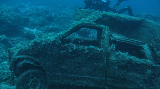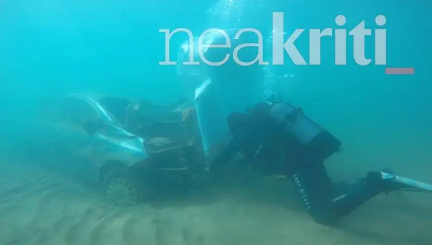 Η εικόνα είναι απόκοσμη και δεν θυμίζει τα πεντακάθαρα νερά της Αγίας Πελαγίας. Οι δύτες κινούνται ανάμεσα σε θαμμένα αυτοκίνητα, λάστιχα και ολόκληρα εμπορεύματα καταστημάτων.