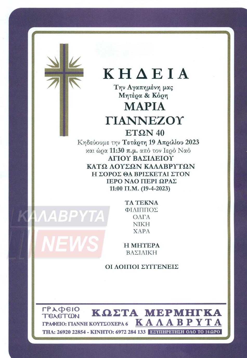 Η Μαρία Γιαννέζου, μητέρα ενηλίκων παιδιών, ζούσε και εργαζόταν στα Καλάβρυτα, σύμφωνα με το kalavrytanews.