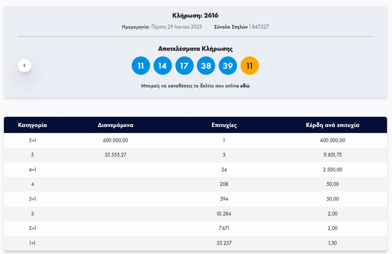 Ολοκληρώθηκε η κλήρωση του Τζόκερ απόψε, 29 Ιουνίου 2023 και αυτοί είναι οι νικητές που ανέδειξε.