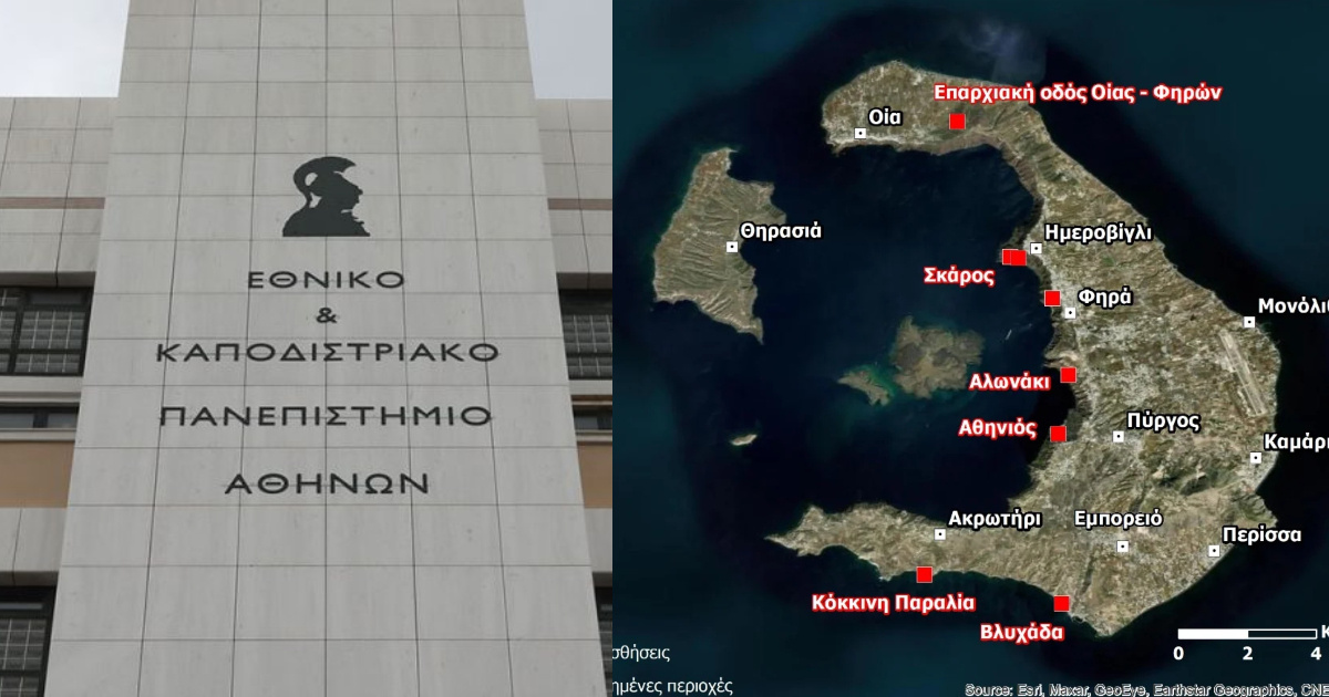 Η ερευνητική ομάδα του Τμήματος Γεωλογίας και Γεωπεριβάλλοντος ΕΚΠΑ παρακολουθεί από την αρχή της εξελισσόμενης σεισμικής ακολουθίας τα συνοδά της φαινόμενα στο νησί της Σαντορίνης. Οι γεωεπιστήμονες του ΕΚΠΑ έχουν συλλέξει δεδομένα και έχουν πραγματοποιήσει παρατηρήσεις, που τους επιτρέπουν να αποτυπώσουν το σύνολο των περιοχών που έχουν πληγεί μέχρι σήμερα από κατολισθητικά φαινόμενα και να ανανεώνουν τη χωρική τους κατανομή με νέα δεδομένα.