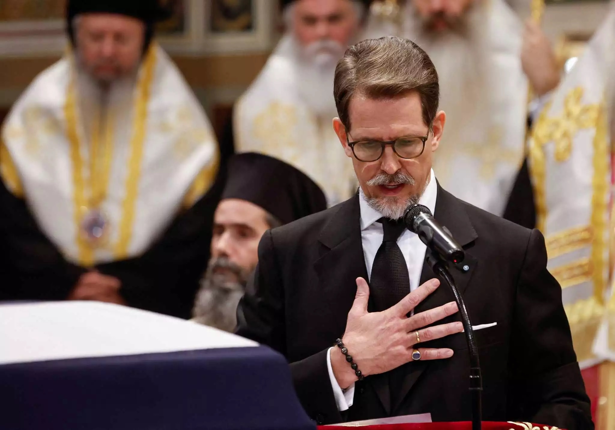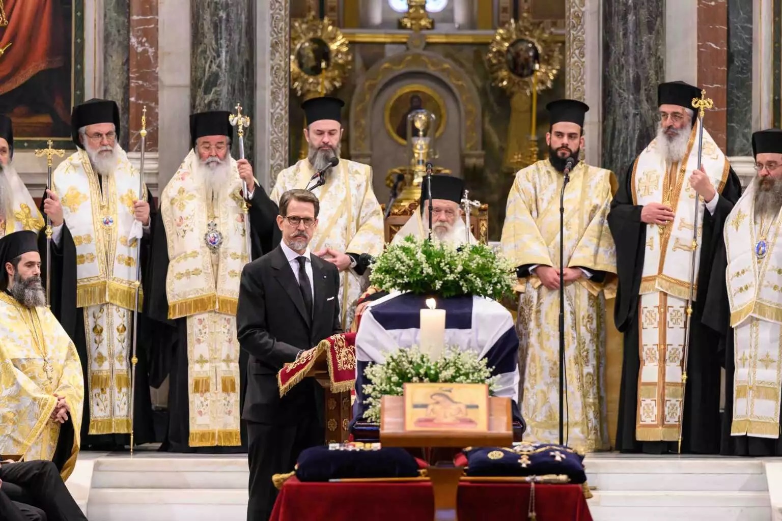 Φανερά συγκινημένος και με «πνιγμένο» λυγμό, ο Παύλος εκφώνησε τον επικήδειο για τον πατέρα του, τέως βασιλιά Κωνσταντίνο, στην κηδεία του στη Μητρόπολη Αθηνών το μεσημέρι της Δευτέρας (16.1.2023). «Καλό ταξίδι» του είπε με λυγμούς ενώ η μητέρα του, Άννα Μαρία, τον κοίταγε και αυτή συγκινημένη.