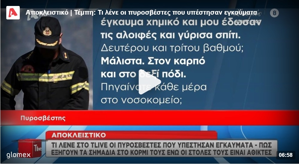“Έκανα χειρουργείο και με παρακολουθούν ακόμα. Δεν γνωρίζω πώς προκλήθηκαν. Δεν αισθάνθηκα ότι κάηκα. Ίσως λόγω της αδρεναλίνης… Όταν έβγαλα τη στολή τότε διαπίστωσα τα εγκαύματα”, ανέφερε ο ένας πυροσβέστης στην εκπομπή της Τατιάνας Στεφανίδου.