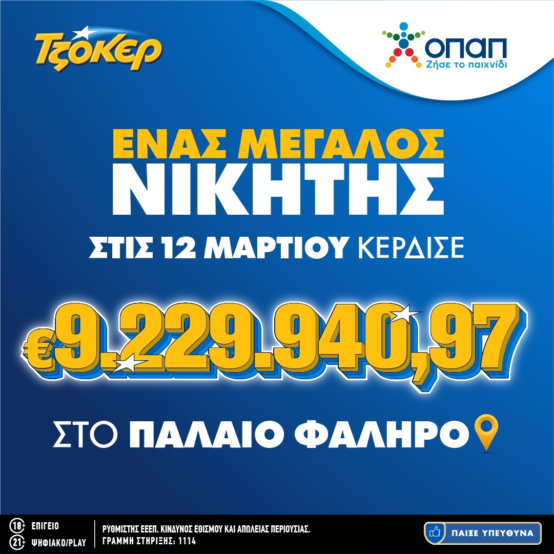 Τζόκερ: Ένας τυχερός κέρδισε 9.229.940,97 ευρώ