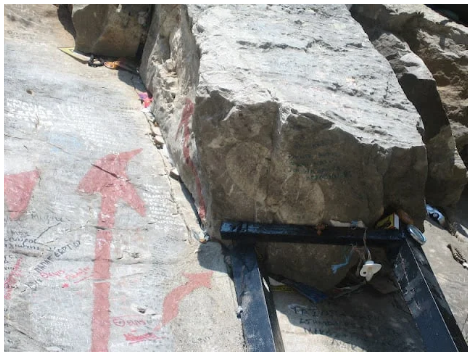 Τὰ «Πατήματα τῆς Παναγίας» ἀλλὰ καὶ την εικόνα της, συναντάει ὁ ἐπισκέπτης στὸ μονοπάτι ποὺ ὁδηγεῖ στὴ Μονὴ Προυσοὺ στὸ Καρπενήσι.