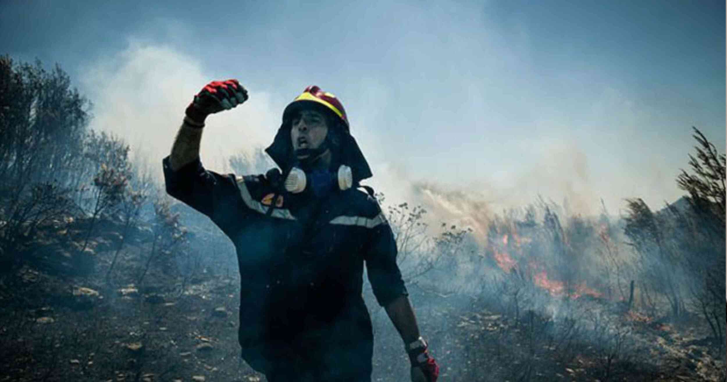 Η φωτογραφία αυτή δείχνει τη μάχη που δίνουν οι πυροσβέστες. Αποδεικνύει τον ηρωισμό τους και την αυταπάρνησή τους.