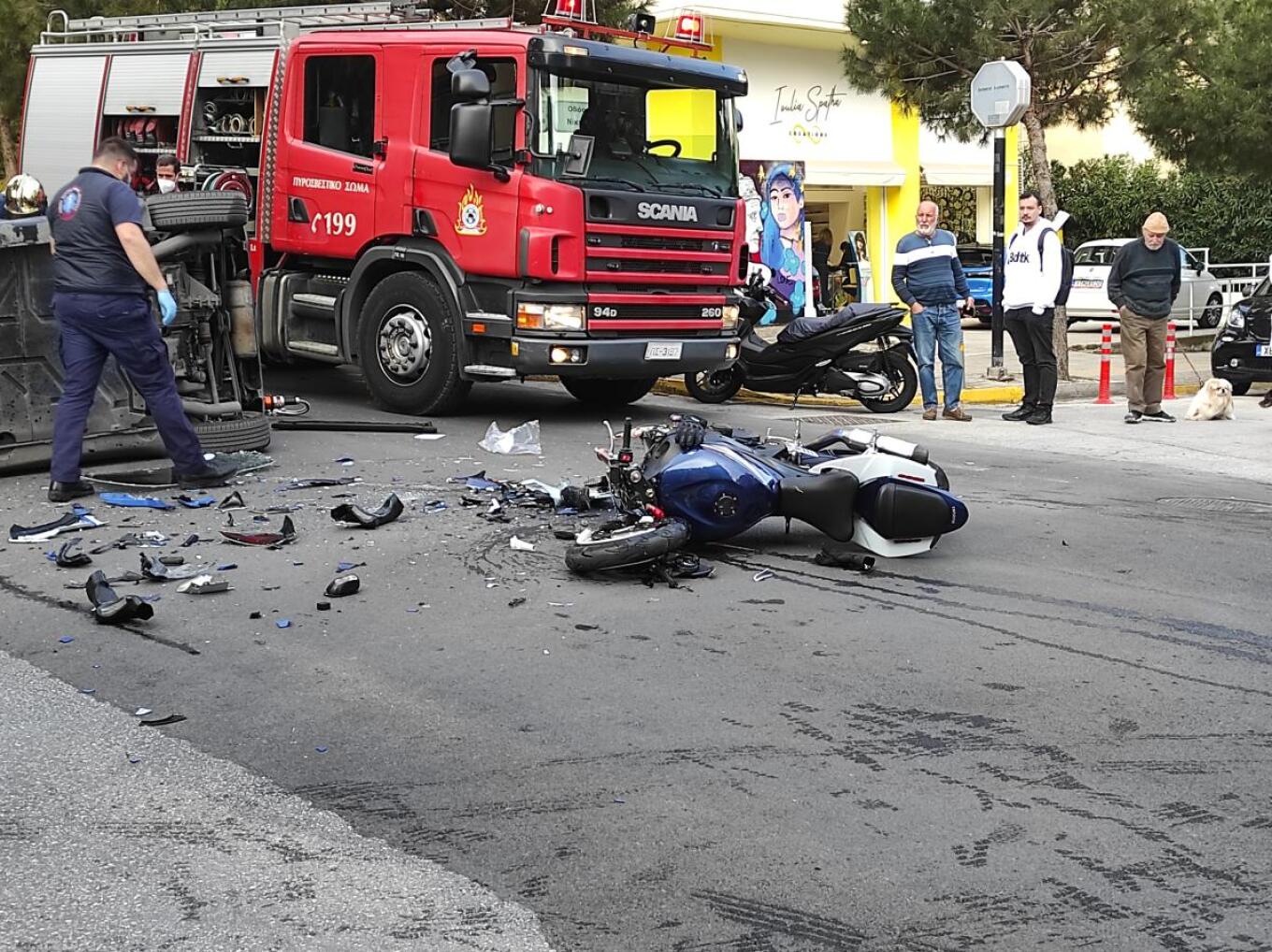 Η σύγκρουση ήταν σφοδρή, με αποτέλεσμα ο οδηγός της μηχανής να εκτιναχθεί και να καταλήξει μέσα στην καμπίνα του οχήματος, το οποίο τούμπαρε. Στο σημείο έσπευσαν ασθενοφόρα και οχήματα της Πυροσβεστικής.