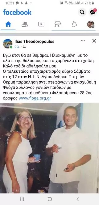 Δύσκολες ώρες για τον Διοικητή του Γενικού Κρατικού Νοσοκομείου Πατρών «Ο Άγιος Ανδρέας» , Ηλία Θεοδωρόπουλο, καθώς έφυγε από τη ζωή σε ηλικία 52 ετών, η αδελφή του Ευγενία, συνταξιούχος τραπεζικός από την Τράπεζα Πειραιώς.