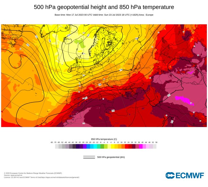 Οι Υψηλές οι τιμές του αντικυκλωνα στον Ευρωπαϊκό Νότο και η έντονη θερμή μεταφορά στις κατωτερες στάθμες, ιδιαιτερα την Παρασκευή και το προσεχές Σαββατοκυριακο, θα οδηγήσουν σε μεγάλη διάρκεια της ζέστης. Από ερχόμενη Δευτέρα και από τα Βόρεια διαφαίνεται υποχωρηση. pic.twitter.com/zSnlYpqfME