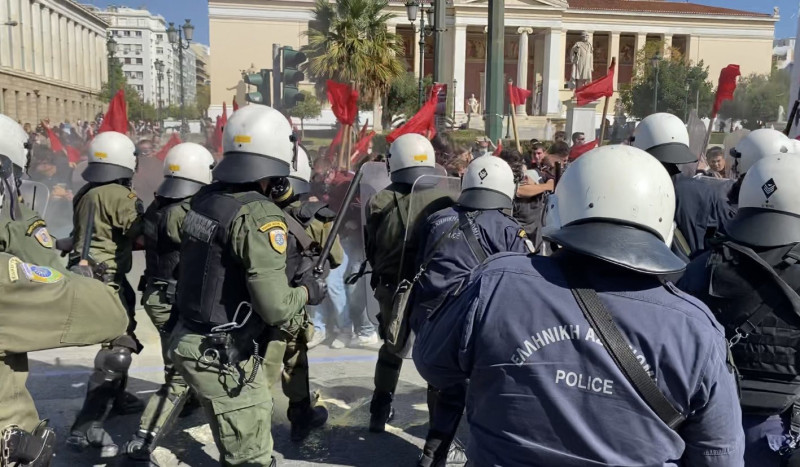 Χημικά και συγκρούσεις με τα ΜΑΤ στην πορεία των φοιτητών στα Προπύλαια