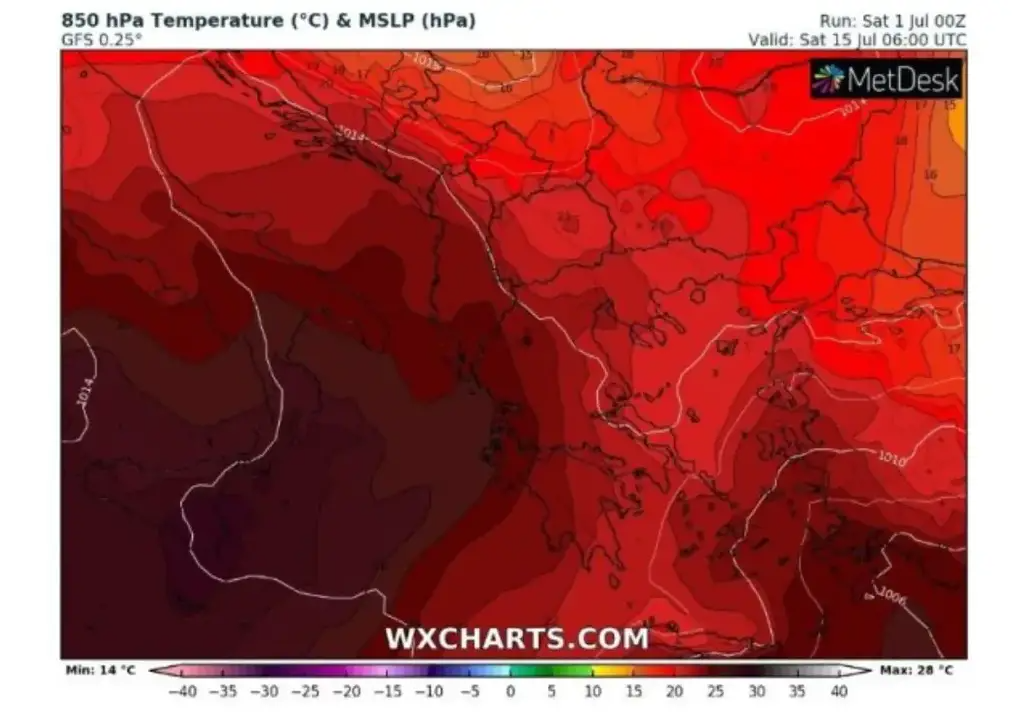 Συγκεκριμένα, από τις 12 Ιουλίου προβλέπεται μία σταδιακή αλλά σημαντική άνοδο της θερμοκρασίας στη χώρα μας, καθώς ευνοείται η μεταφορά των ιδιαίτερα θερμών αέριων μαζών από τις ακτές της Βορείου Αφρικής, με αποτέλεσμα να αυξάνονται οι πιθανότητες η Ελλάδα να επηρεαστεί από το πρώτο κύμα καύσωνα του καλοκαιριού, χωρίς όμως να υπάρχουν τα χαρακτηριστικά που να υποδηλώνουν σε καμία περίπτωση ότι θα δούμε ακραίες τιμές, αλλά ένα τυπικό κύμα καύσωνα που έχουμε κάθε χρόνο, τους καλοκαιρινούς μήνες.