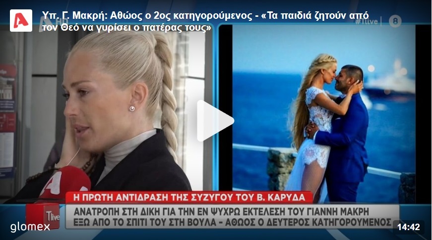 Ο Γιάννης Μακρής δολοφονήθηκε έξω από το σπίτι του στη Βούλα, τον Οκτώβριο του 2018. Η σύζυγός του, Βικτώρια Καρύδα, ξέσπασε μετά την ανατροπή στην δίκη για τους δύο κατηγορουμένους για τη δολοφονία του.