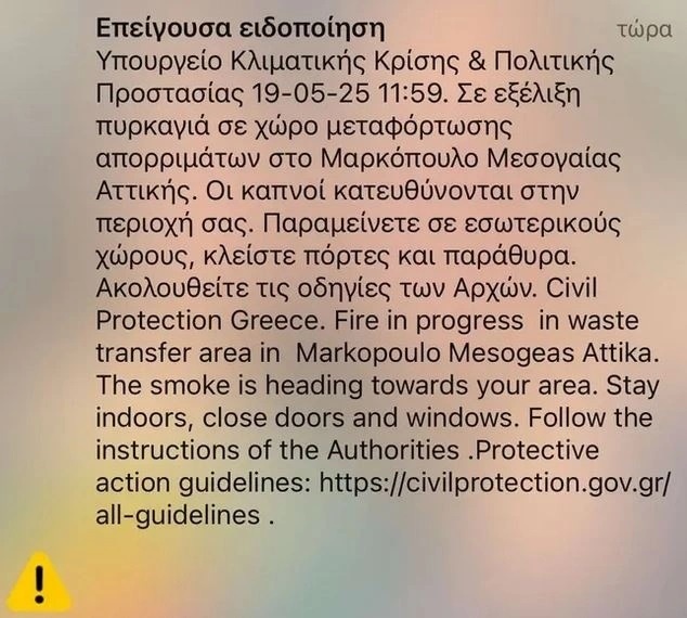 Φωτιά ξέσπασε το πρωί της Δευτέρας 19 Μαΐου στο Μαρκόπουλο κοντά στον Ιππόδρομο.