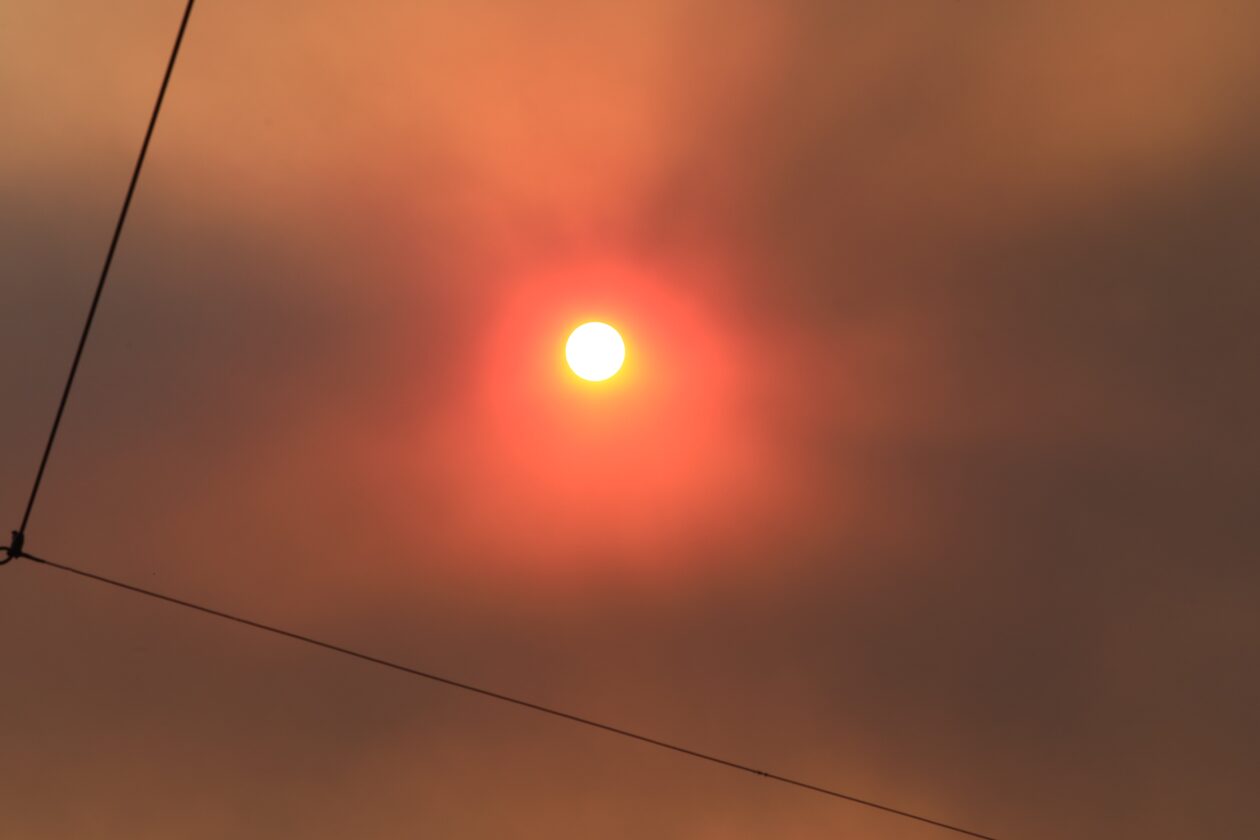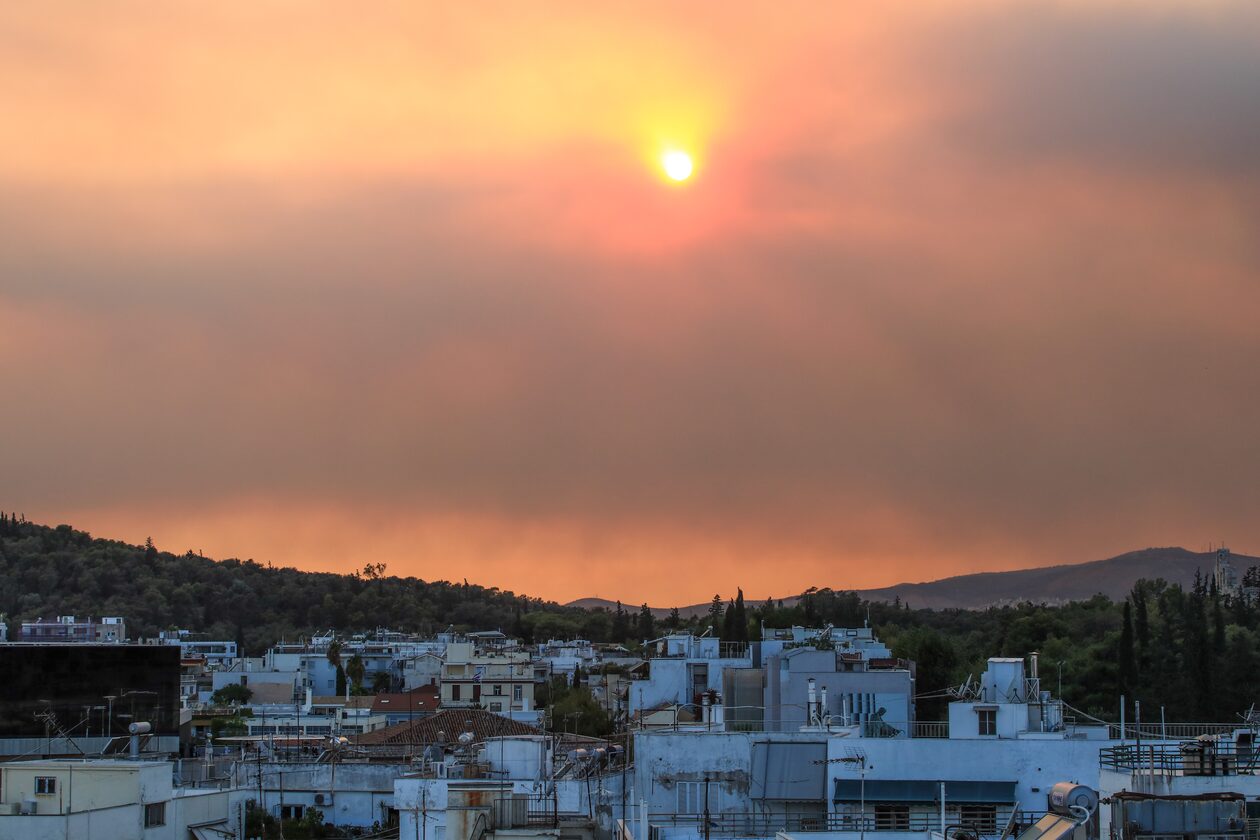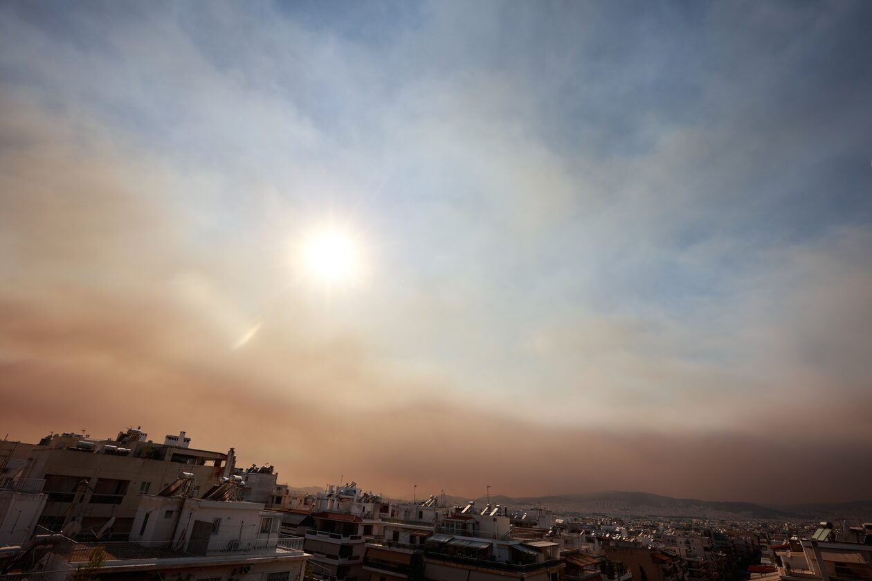Η μυρωδιά του καμένου έχει φτάσει μέχρι και το Φάληρο, ενώ με το πρώτο φως της ημέρας έγινε ορατό το πέπλο καπνού να έχει καλύψει τον ουρανό.