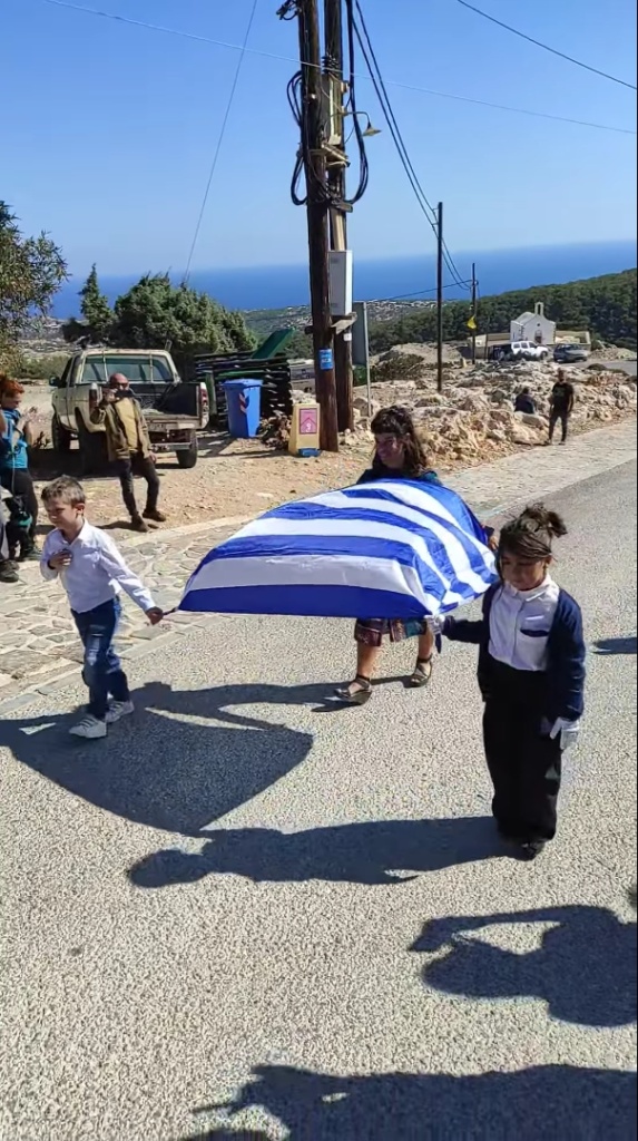 Με υπερηφάνεια και συγκίνηση οι δυο μαθητές της ακριτικής Γαύδου πραγματοποίησαν τη Δευτέρα το πρωί, την καθιερωμένη παρέλαση για την 28η Οκτωβρίου και καταχειροκροτήθηκαν.