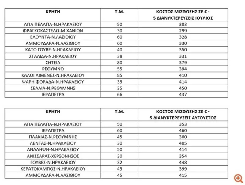 Στην Κρήτη, οικονομικές επιλογές καταγράφονται κυρίως σε προορισμούς των νομών Ηρακλείου και Ρεθύμνης.
