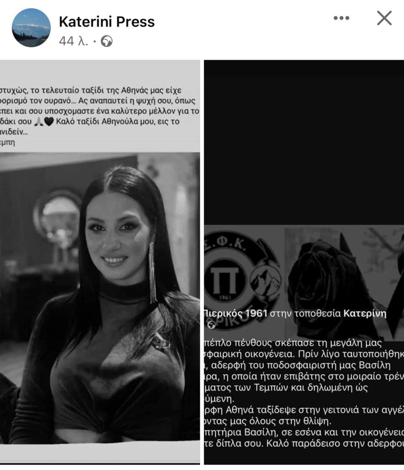 Η 34χρονη Αθηνά από την Κατερίνη, η οποία βρισκόταν ανάμεσα στους αγνοούμενους του δυστυχήματος των Τεμπών, είναι δυστυχώς ένα από τα θύματα της τραγωδίας.