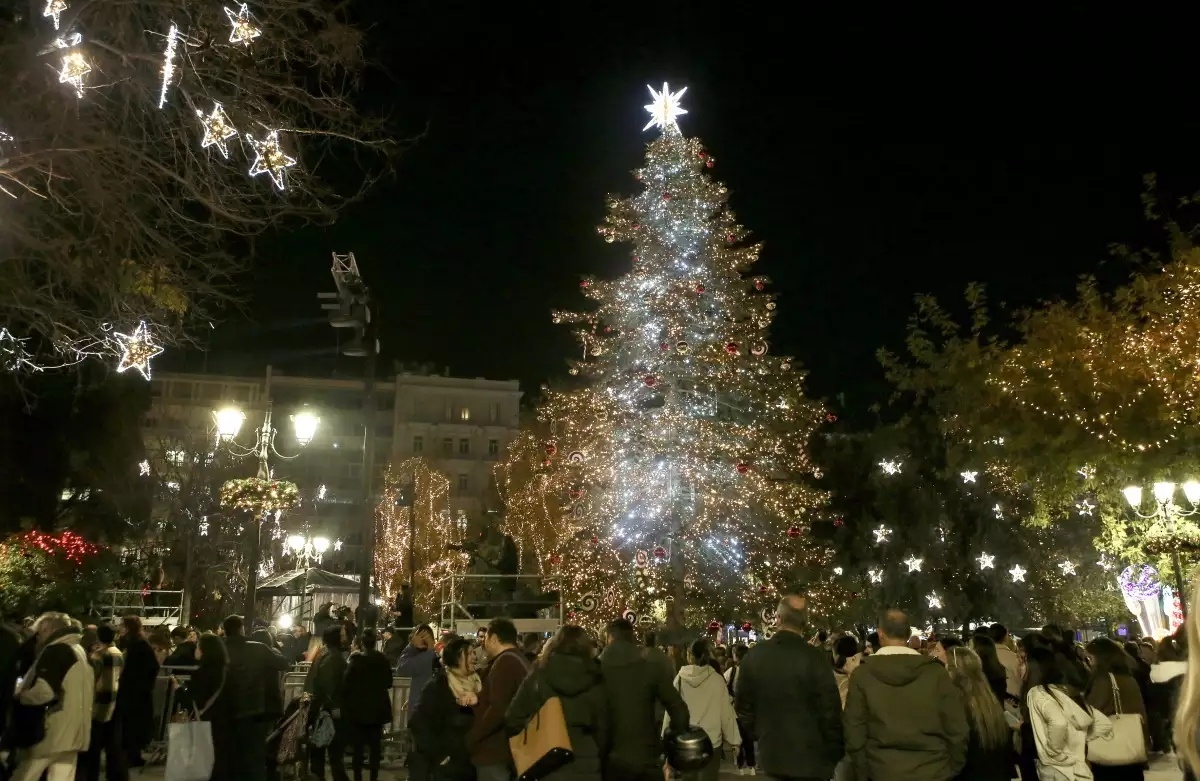 Ο Χάρης Δούκας πάτησε το κουμπί και άναψε τα 20.000 λαμπάκια στο Σύνταγμα στην Αθήνα. Το δέντρο έχει ύψος 20 μέτρα και προέρχεται από τον Ταξιάρχη Χαλκιδικής. Το κέντρο της Αθήνας έχει μπει για τα καλά σε διάθεση Χριστουγέννων.