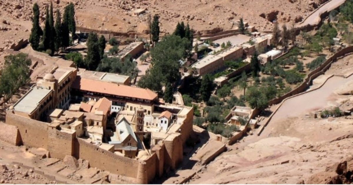 Στην βυζαντινη αυτοκρατορία του Ιουστινιανού, ανάμεσα στο 527 και 565, χτισμένη πάνω στη «φλεγόμενη βάτο» του Μωυσή. Το μέρος θεωρείται ιερό για χριστιανούς, μουσουλμάνους και Εβραίους.