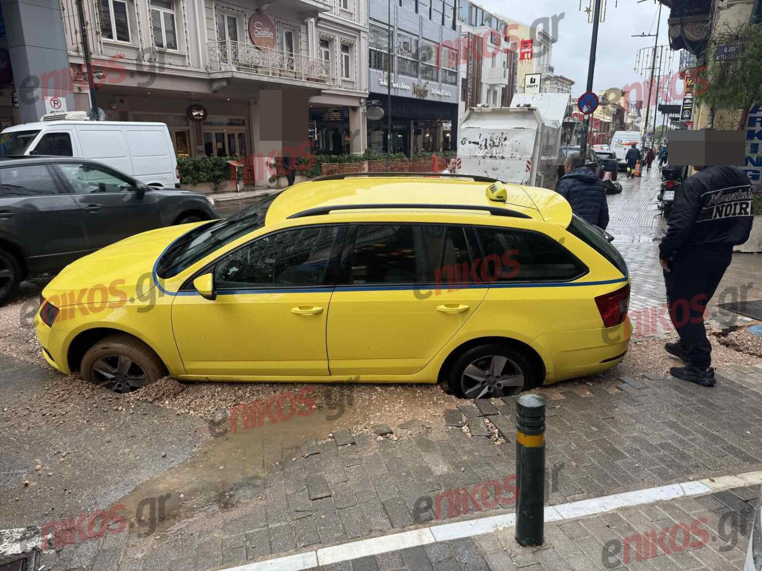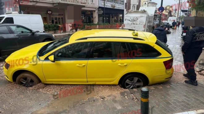 Η βροχή δημιούργησε λάσπη και το ταξί κόλλησε στις λακκούβες.
