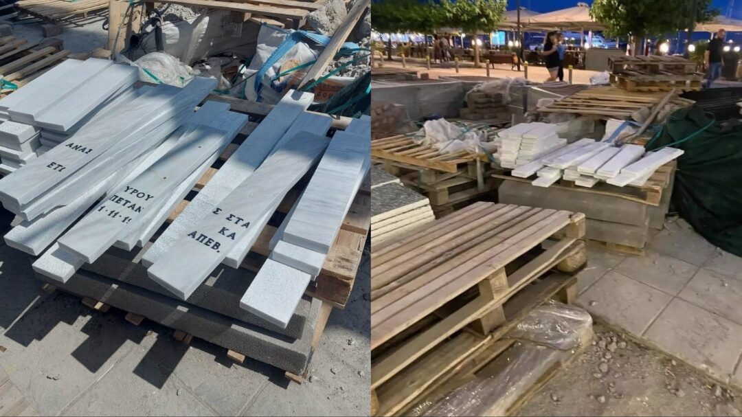 Καλαμάτα: Εργολάβος ξεκίνησε ανάπλαση έργου με μάρμαρα από τάφους