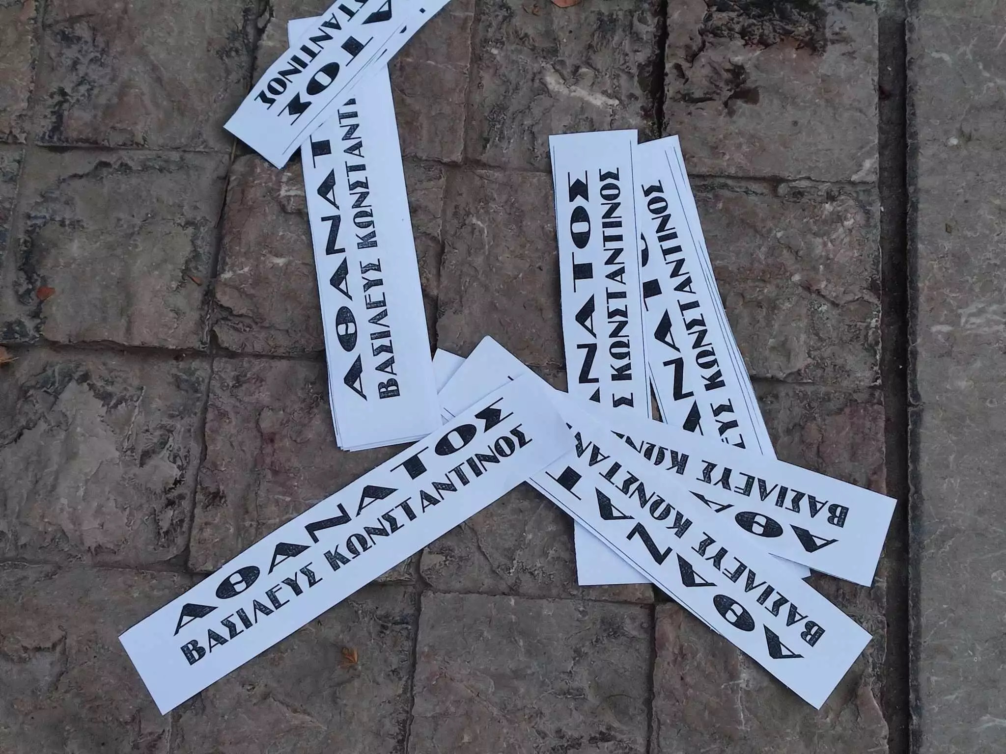 Οι παρευρισκόμενοι σε κάποια στιγμή έψαλλαν τον Εθνικό Ύμνο, και φώναξαν «ζήτω ο Βασιλιάς», ενώ πέταξαν και φέιγ βολάν, τα οποία έγραφαν «Αθάνατος-Βασιλεύς Κωνσταντίνος».