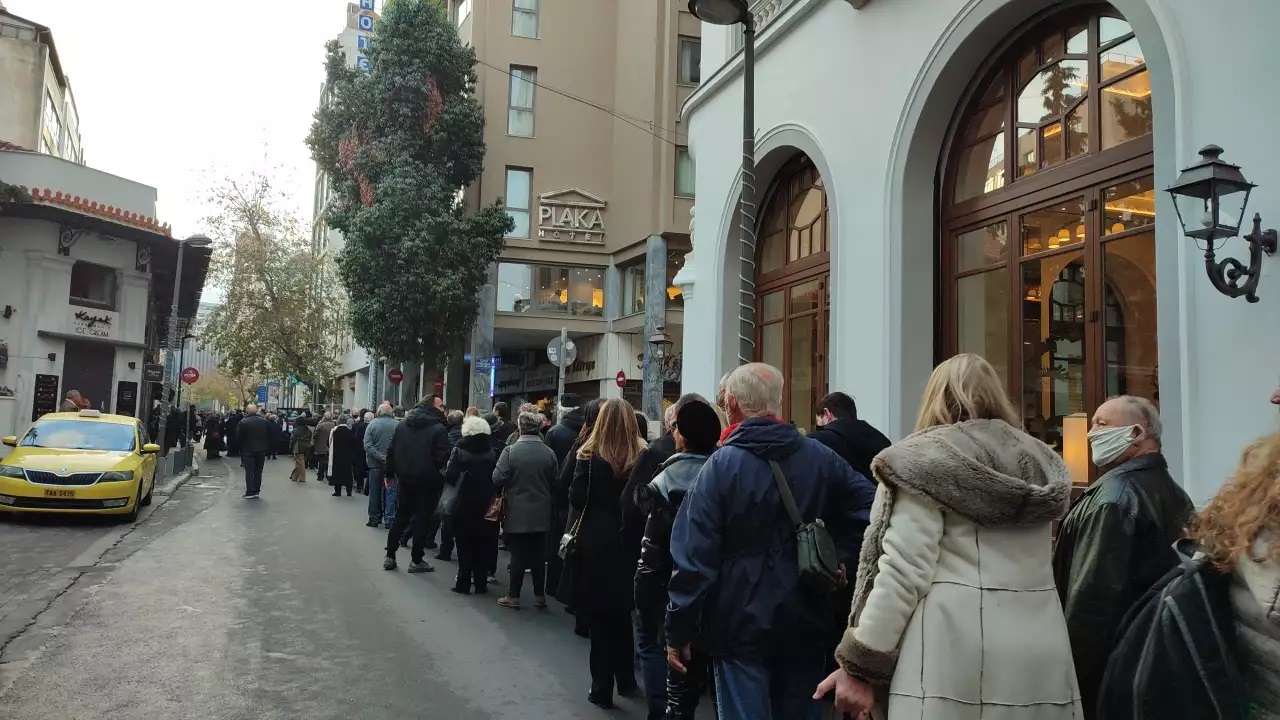 Πούλμαν έχουν φτάσει από όλη την Ελλάδα, και ήδη από τις 5 το πρωί έξω από το Παρεκκλήσι της Μητρόπολης Αθηνών η ουρά είναι μεγάλη, καθώς πολλοί είναι αυτοί που θέλουν να πουν το τελευταίο «αντίο» στον τέως Βασιλιά Κωνσταντίνο.