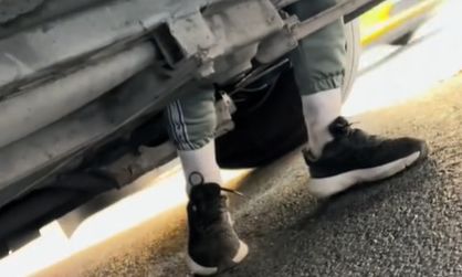 Οι εικόνες είναι συγκλονιστικές, καθώς οι δύο μετανάστες φαίνονται κυριολεκτικά σφηνωμένοι στον στενό χώρο κάτω από το πούλμαν, ενώ πασχίζουν να βγουν σερνόμενοι από τον εξαιρετικά περιορισμένο χώρο.
