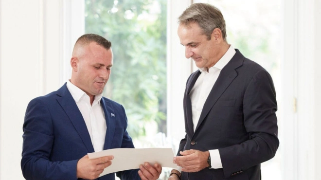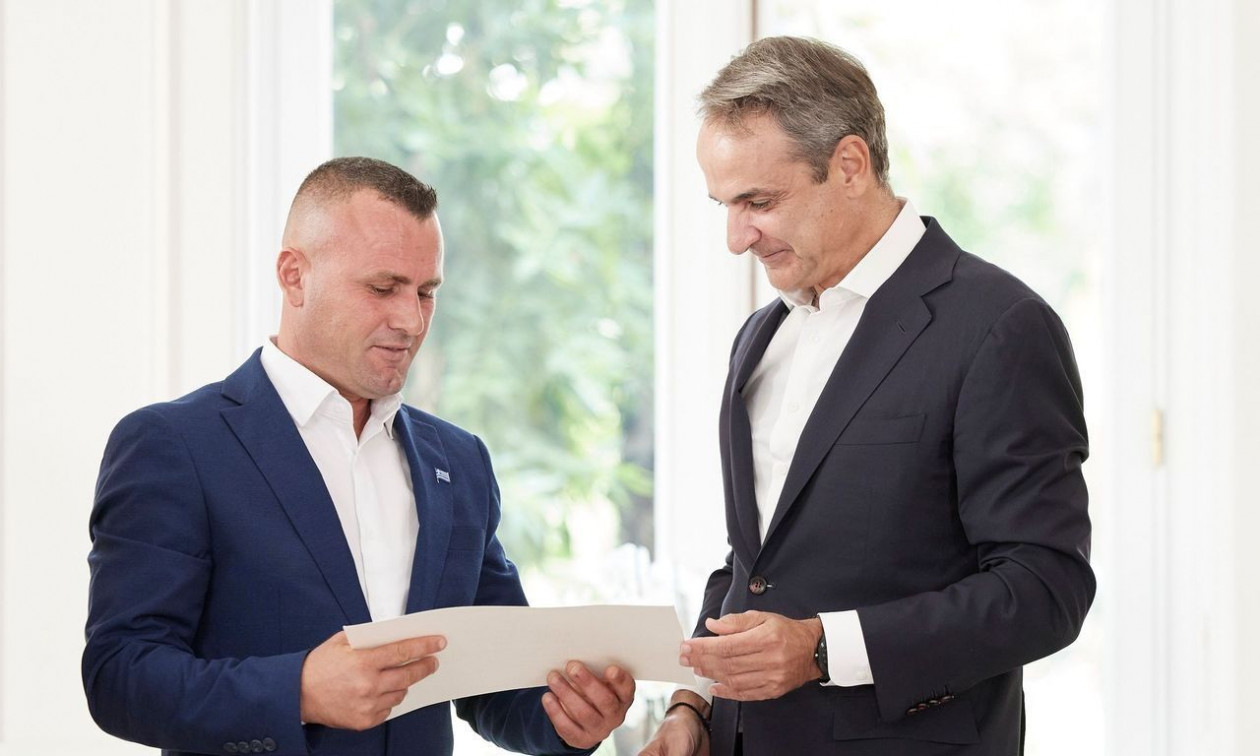 Ο Γκόγκα Λεντιάν έδωσε τον όρκο του Έλληνα πολίτη ενώπιον του Κυριάκου Μητσοτάκη, παρουσία του υπουργού Εσωτερικών, Θοδωρή Λιβάνιου και του Γενικού Γραμματέα Ιθαγένειας, Δημήτρη Κάρναβου.
