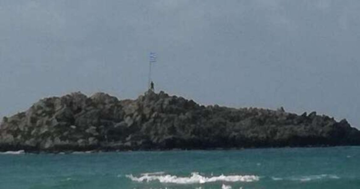 Ο Κρητικός Λεβέντης κολύμπησε από την παραλία ως το νησάκι και στη θέση της σκισμένης σημαίας, έβαλε μια νέα ελληνική σημαία σε μια κίνηση με έντονο συμβολισμό λόγω της σημερινής ημέρας.