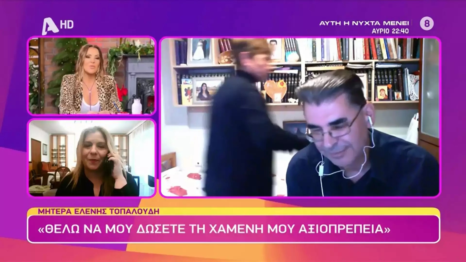 Τότε είναι που η μητέρα της Ελένης Τοπαλούδη εκνευρίστηκε που δεν άκουσε μία καθαρή λύση και σηκώθηκε να φύγει από τη σύνδεση: «Δεν ακούω τίποτα, μας δουλεύουν. Να γίνει και άντε να γίνει. Άντε από δω…», είπε η ίδια και αποχώρησε.