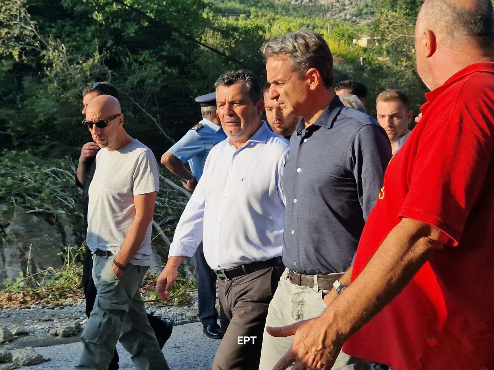 Νωρίτερα ο πρωθυπουργός πέταξε πάνω από τις πληγείσες και προσγειώθηκε στο στάδιο της Καρδίτσας όπου μίλησε με τους απεγκλωβισθέντες που μετέφεραν εκείνη την ώρα τα ελικόπτερα, με τους διασώστες της πυροσβεστικής και του στρατού, τους πιλότους, το προσωπικό του ΕΚΑΒ, τους γιατρούς και τους νοσηλευτές.