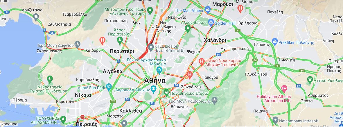Ιδιαίτερα αυξημένη είναι η κίνηση στους δρόμους του λεκανοπεδίου της Αττικής το πρωί της Δευτέρας, με το μποτιλιάρισμα να είναι και πάλι εδώ