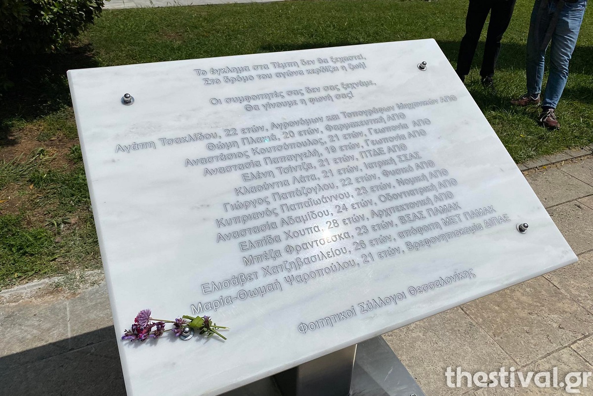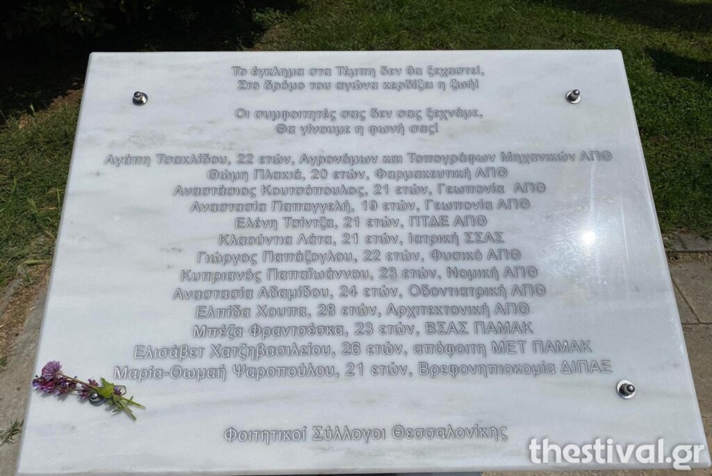 Δείτε τα αποκαλυπτήρια του μνημείου στο ΑΠΘ για τους φοιτητές που «χάθηκαν» τόσο νωρίς στα Τέμπη