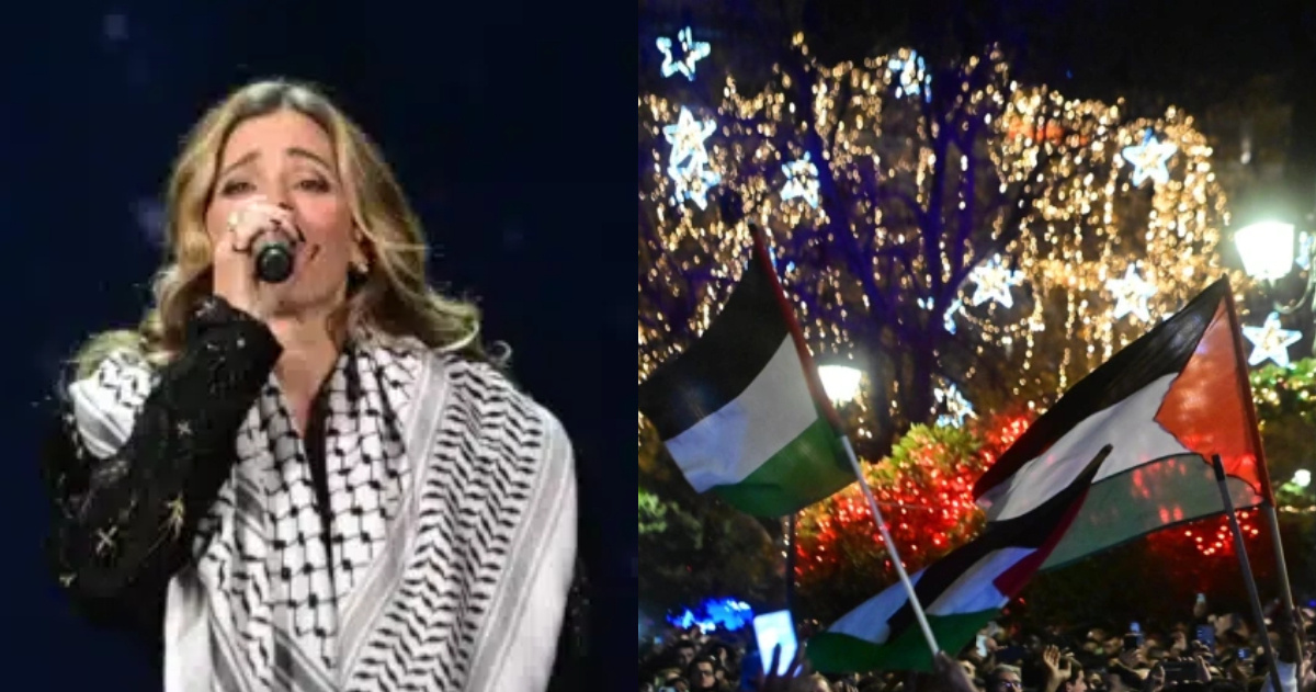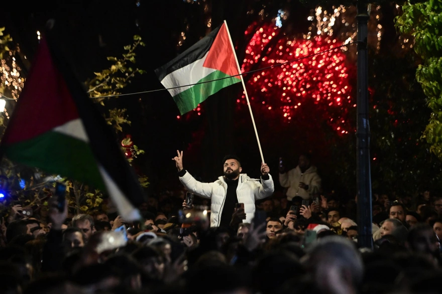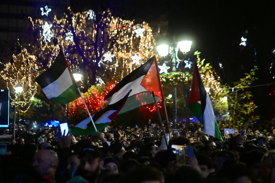 Σημαίες της Παλαιστίνης ύψωσαν και ορισμένοι από όσους επέλεξαν την κεντρική πλατεία της χώρας για να γιορτάσουν την αλλαγή του χρόνου.