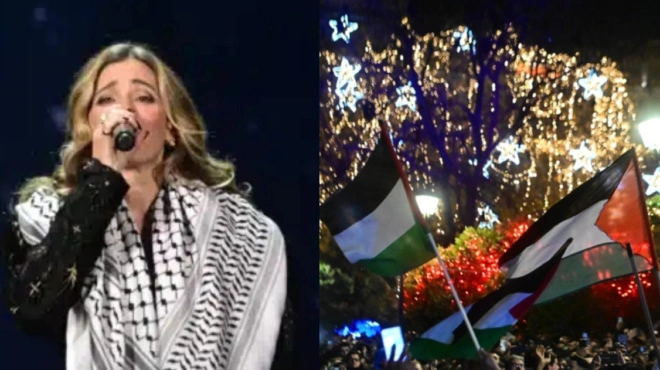Η εμφάνιση της Νατάσας Μποφίλιου στο Σύνταγμα με παλαιστινιακή μαντίλα.