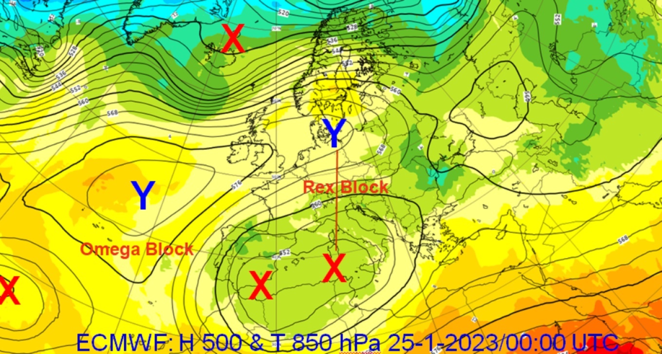 Το μεγάλης έκτασης και αξιόλογου βάθους αποκομμένο χαμηλό θα αποτελέσει για αρκετές ημέρες μέρος ενός μεγάλης κλίμακας ατμοσφαιρικού μπλοκαρίσματος μεικτού τύπου (Omega Block και Rex Block) και θα μας απασχολήσει καθ’ όλη τη διάρκεια της νέας εβδομάδας.