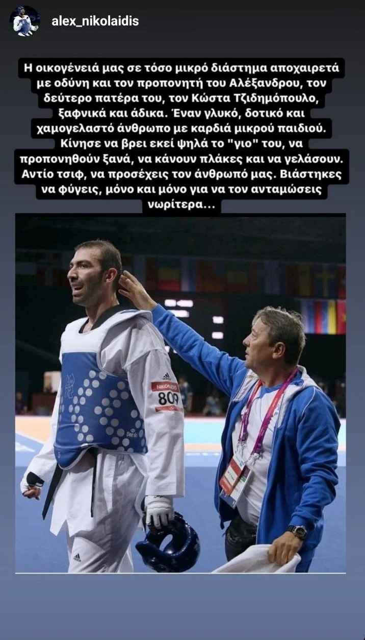 Το δυσάρεστο νέο έγινε γνωστό από την οικογένεια του Αλέξανδρου Νικολαΐδη, το πρωί της Τετάρτης, 25 Ιανουαρίου, με μία ανάρτηση στον λογαριασμό του ίδιου του αθλητή στα social media, στην οποία αποχαιρετούσε τον Κώστα Τζιδημόπουλο με ένα συγκινητικό μήνυμα.
