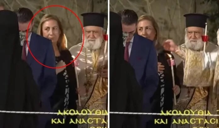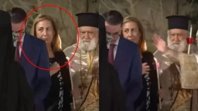 Η Μαριζίλα Ξενογιαννακοπούλου στην προσπάθειά της να πάρει την «ευχή» του Αρχιεπισκόπου Ιερώνυμου στη Μητρόπολη Αθηνών έβαλε μόνη της φωτιά στα μαλλιά της από την λαμπάδα που κρατούσε στο χέρι της.