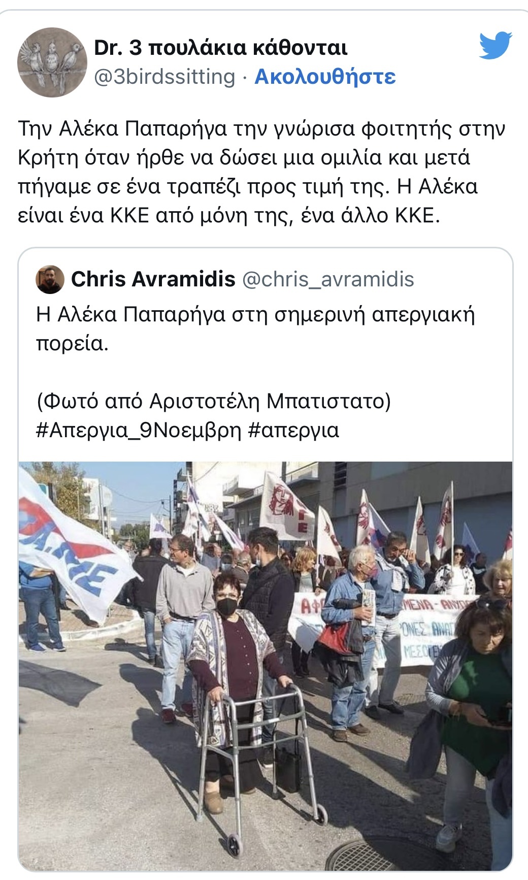 Αλέκα Παπαρήγα: Παρά το πρόβλημα υγείας της ήταν στη συγκέντρωση του ΠΑΜΕ