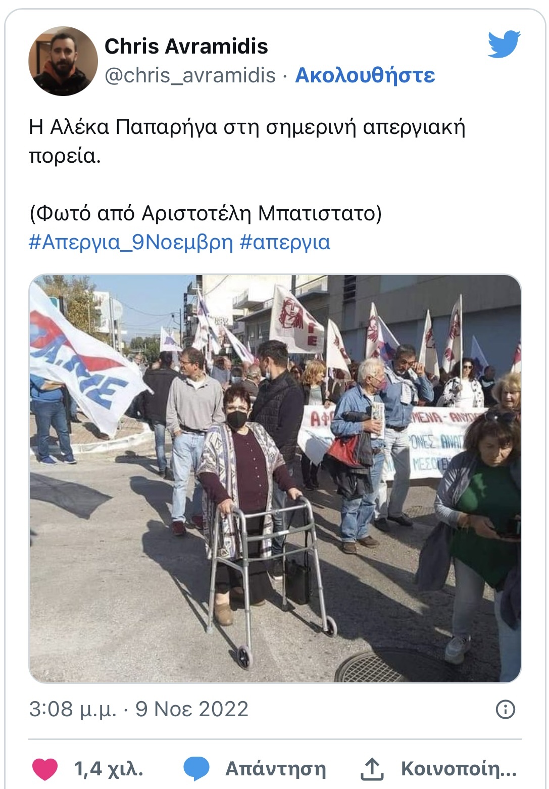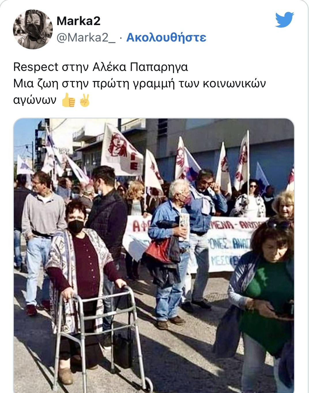 Αλέκα Παπαρήγα: Παρά το πρόβλημα υγείας της ήταν στη συγκέντρωση του ΠΑΜΕ