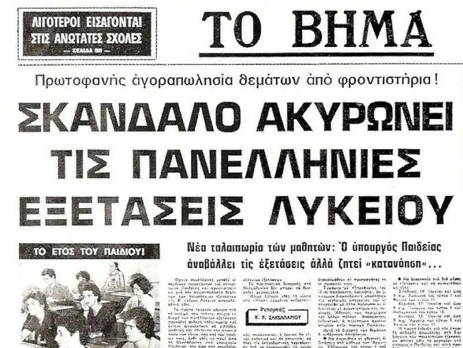 Ήταν Ιούνιος του 1979, παραμονές των εξετάσεων στα Αρχαία Ελληνικά και τα Μαθηματικά, όταν στις αστυνομικές αρχές έφτασε πληροφορία για διαρροή θεμάτων σε φροντιστήρια. Οι μαθητές είχαν ξεκινήσει να εξετάζονται κανονικά, με την έρευνα της αστυνομίας να βρίσκεται σε εξέλιξή. Σύντομα ξεκίνησαν οι συλλήψεις. Υπήρχαν όντως μαθητές που διέδιδαν τα υπό εξέταση θέματα σε φίλους τους, γνωρίζοντας με βεβαιότητα πως αυτά θα έπεφταν στις εξετάσεις.
