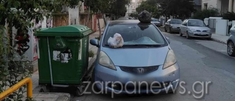 Μια έκπληξη περίμενε έναν οδηγό στα Χανιά, ο οποίος αποφάσισε να παρκάρει το αυτοκίνητό του μπροστά σε κάδο σκουπιδιών, κλείνοντας την πρόσβαση στους κατοίκους που θέλουν να πετάξουν τα σκουπίδια τους.