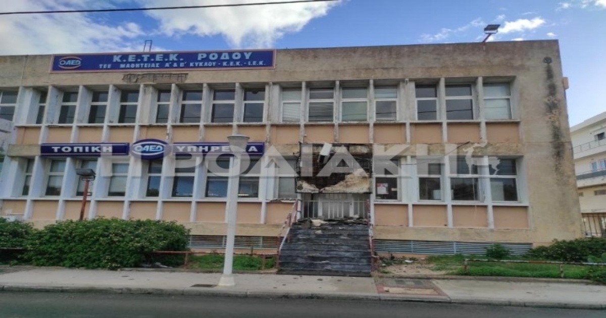 Η κακοκαιρία Bora έφερε την κατάρρευση τμήματος μπαλκονιού του κτηρίου του ΟΑΕΔ στην Ρόδο.